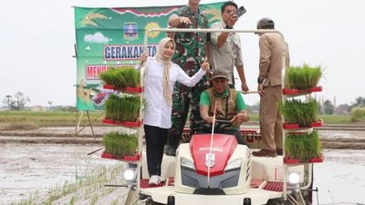 Bupati Serang Ratu Zakiyah : Lakukan Percepatan Tanam Padi Gunakan Transplanter di Kramatwatu