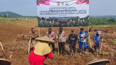 Polsek Cimarga Polres Lebak Bersama Kepala Desa Sangiangjaya Melaksanakan Penanaman Jagung Seretak dilahan PAT