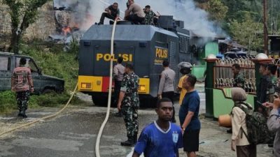 Quick Respon Polri Bantu Padamkan Kebakaran di Kodam Lama Jayapura