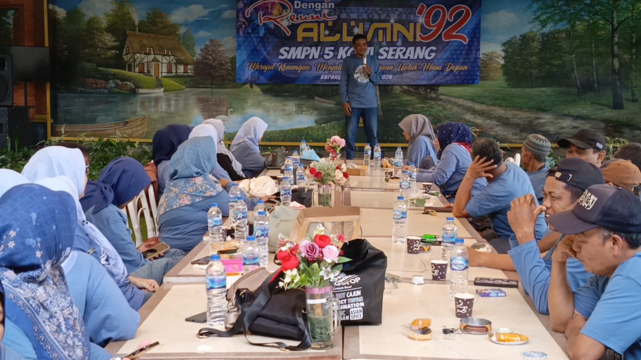TintaRaya, KOTA SERANG – Alumni Sekolah Menengah Pertama Negeri (SMPN) 5 Kasemen – Kota Serang angkatan tahun 1992 menggelar reuni sederhana namun hidmat dan penuh keakraban pada Sabtu, (3/1/2026). Kegiatan tersebut berlangsung di Rumah Makan Pondok Kelapa (Pokel) Kasemen, Kota Serang, Provinsi Banten dengan tema “merajut kenangan, menjalin persaudaraan untuk masa depan