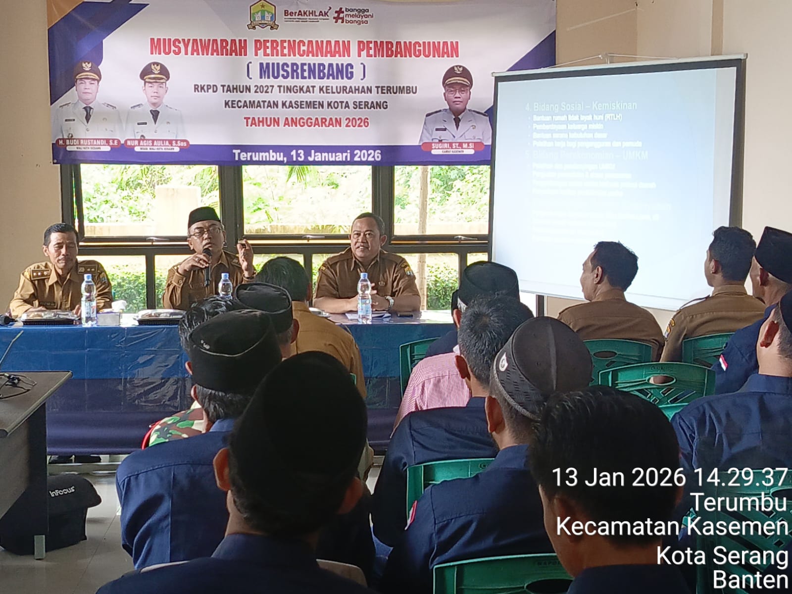 Dalam Musrenbang kali ini Camat Kasemen Sugiri, S.ST, M.Si turut memberikan pemaparan yang menitik beratkan pada tiga hal pokok yakni: