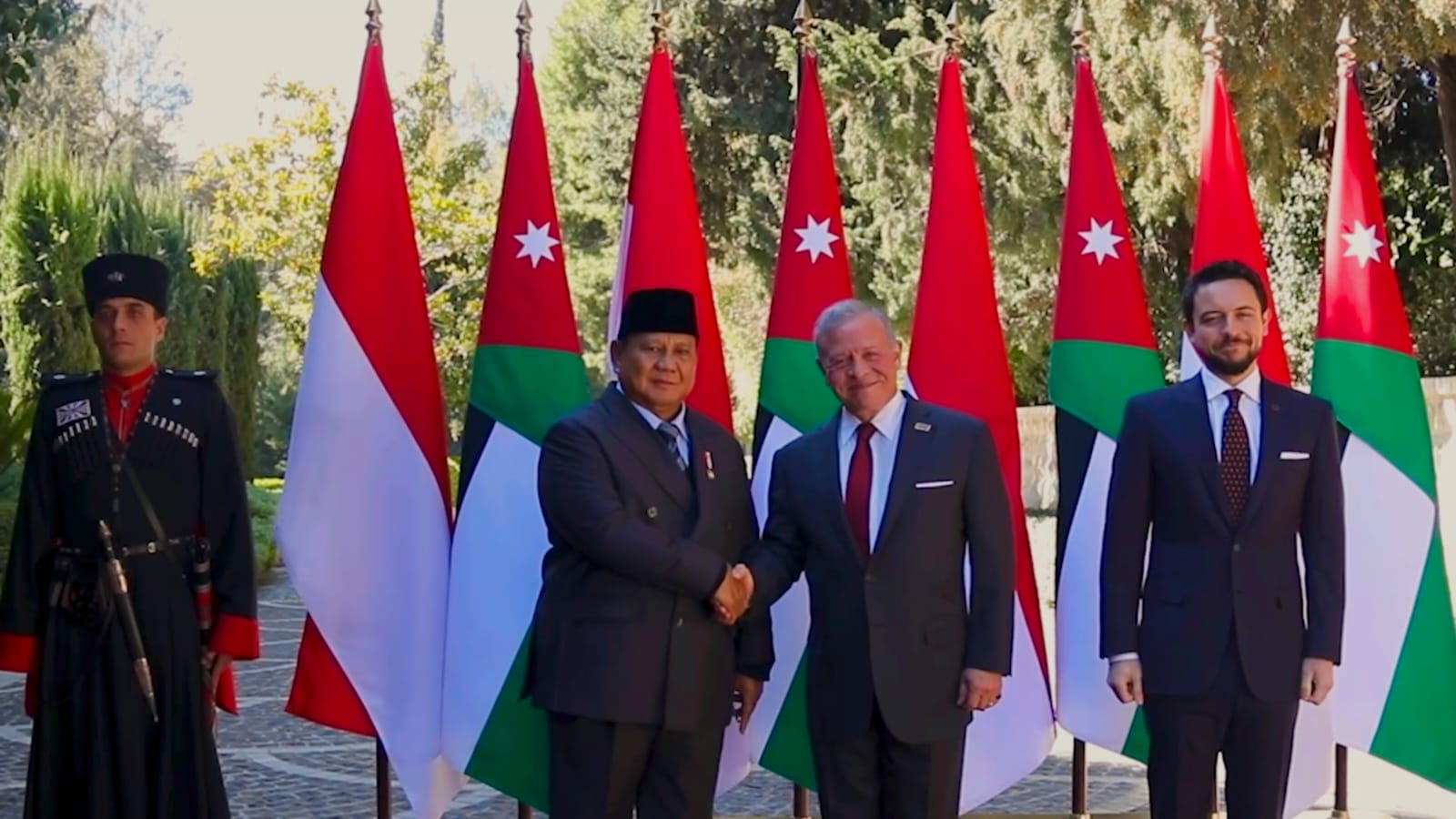 “Anda menghargai masa depan rakyat kita. Hal ini tentu menghangatkan hati kita semua. Saya mengetahui komitmen Anda untuk menghadirkan perdamaian dan ketenangan, serta keberanian Anda dalam melindungi rakyat Gaza yang menurut saya sangat penting,” ujar Raja Abdullah II kepada Prabowo, seraya menyampaikan harapannya untuk memperkuat kerja sama dalam membantu masyarakat Palestina.