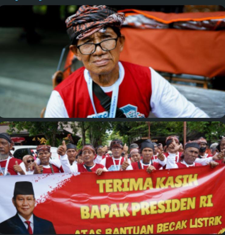 “Ini bantuan pribadi Bapak Presiden Prabowo dan sudah diberikan sejak 2024. Ini karena kepedulian beliau. Beliau sedih melihat para penarik becak yang rata-rata berusia di atas 55–60 tahun harus menarik becak hingga ngos-ngosan,” ujar Nanik.