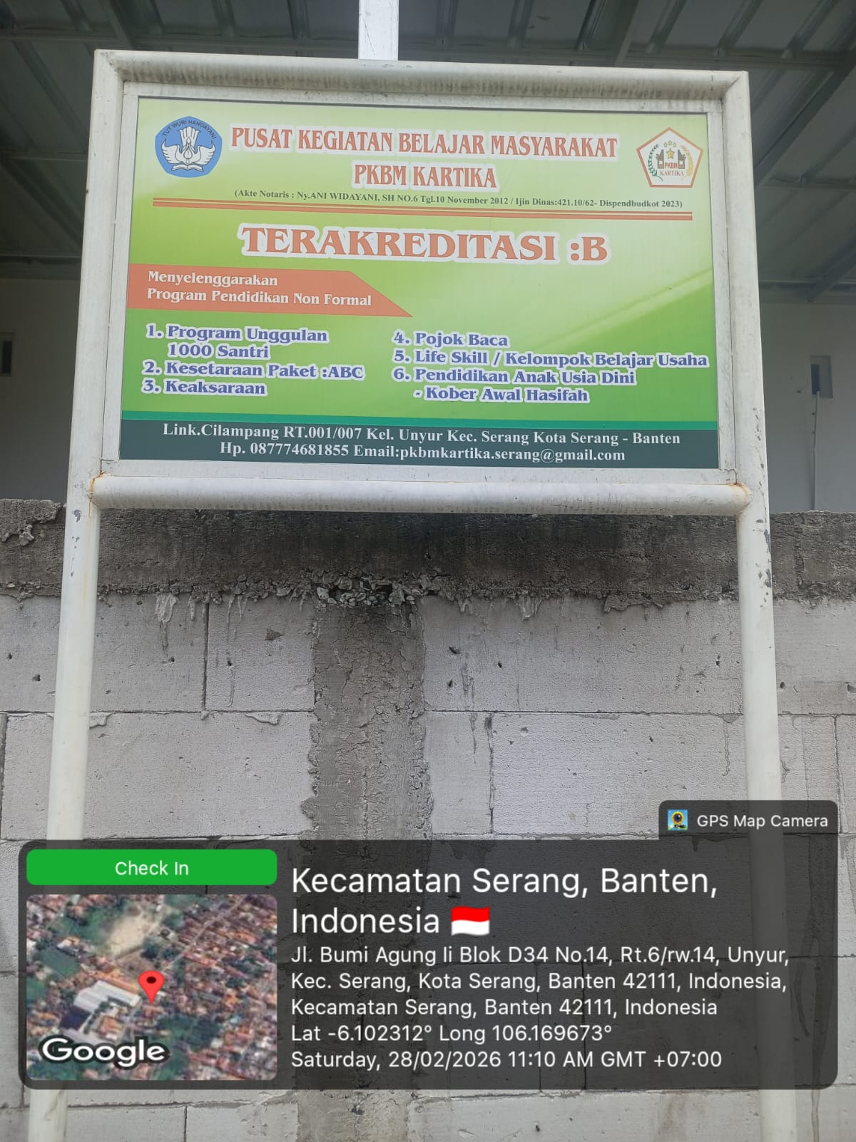 1. PKBM Kartika, alamat: Link.Cilampang RT.01/07 Kelurahan Unyur, Kecamatan Serang