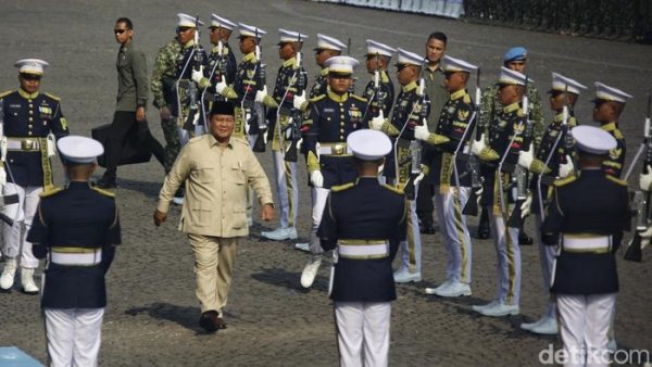 “Saya menyampaikan ucapan selamat Hari Ulang Tahun ke 80 Tentara Nasional Indonesia, Dirgahayu TNI,” kata Prabowo dalam memberikan amanat di mimbar kehormatan.
