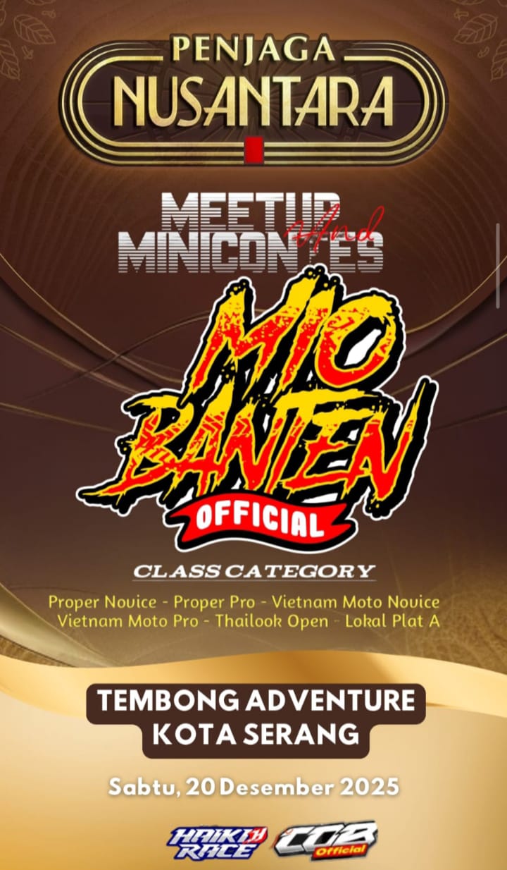 TintaRaya, KOTA SERANG – Sebanyak 48 kontestan modifikasi motor mio yang di ikuti oleh beberapa club dan juga perorangan, Beberapa peserta kontes berdatangan dari kota dan kabupaten Serang, Kota Cilegon, Kabupaten Pandeglang, Kabupaten Lebak, Kota Tangerang, Bekasi dan Jakarta. Mio Banten mengadakan Meetup And Minicontes vol 1 kali ini diadakan di Kota Serang bertepatan dilokasi Tembong Adventurn and Outbond Jl. Baru Ciomas no. 89 Kelurahan Tembong Kecamatan Cipocok Jaya, Kota Serang, Provinsi Banten. Sabtu, (20/12/2025)