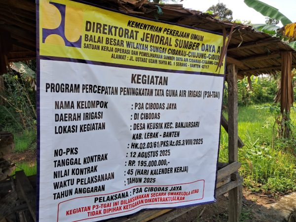 Bungas Banten, LEBAK – Program Percepatan Peningkatan Tata Guna Air (P3TGAI) adalah salah satu program yang dapat membantu mengairi lahan pesawahan.” Pasalnya bahwa program ini bertujuan untuk meningkatkan produktivitas dan pendapatan petani melalui penggunaan teknologi dan manajemen yang tepat.