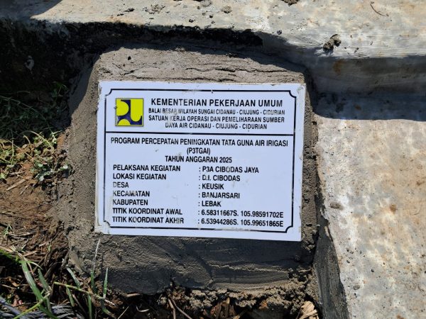Juga pekerjaan tersebut dari Kementerian Pekerjaaan Umum Direktorat Jenderal Sumber Daya Air ,melalui Balai Besar Wilayah Sungai Cidanau-Cidurian Satuan Kerja Operasi dan Pememeliharaan Sumber Daya Air Cidanau–Ciujung-Cidurian “ Dengan melalui Program Percepatan Peningkatan Tata Guna Air (P3TGAI) di Daerah Irigasi Cibodas, Pelaksana kegiatan : Perkumpulan Petani Pemakai Air (P3A) Cibodas Jaya , dengan nilai anggaran Rp 195.000.000,- ( Seratus Sembilan puluh lima juta rupiah )