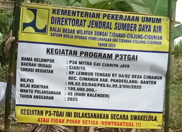 “ Maka dengan adanya P3TGAI di Daerah Irigasi (D.I) Cariya “ yang di laksanakan oleh Perkumpulan Pemakai Petani Air (P3A) Mitra Cai Ciariya Jaya, yang berlokasi di kampung Lembur Tengah Rt 04/02 desa Cimanuk, Kecamatan Cimanuk, Kabupaten Pandeglang, Provinsi Banten “ sejumlah warga dan Kelompok tani ( Poktan) mengucapkan terima kasih serta antusias “ JelasNya